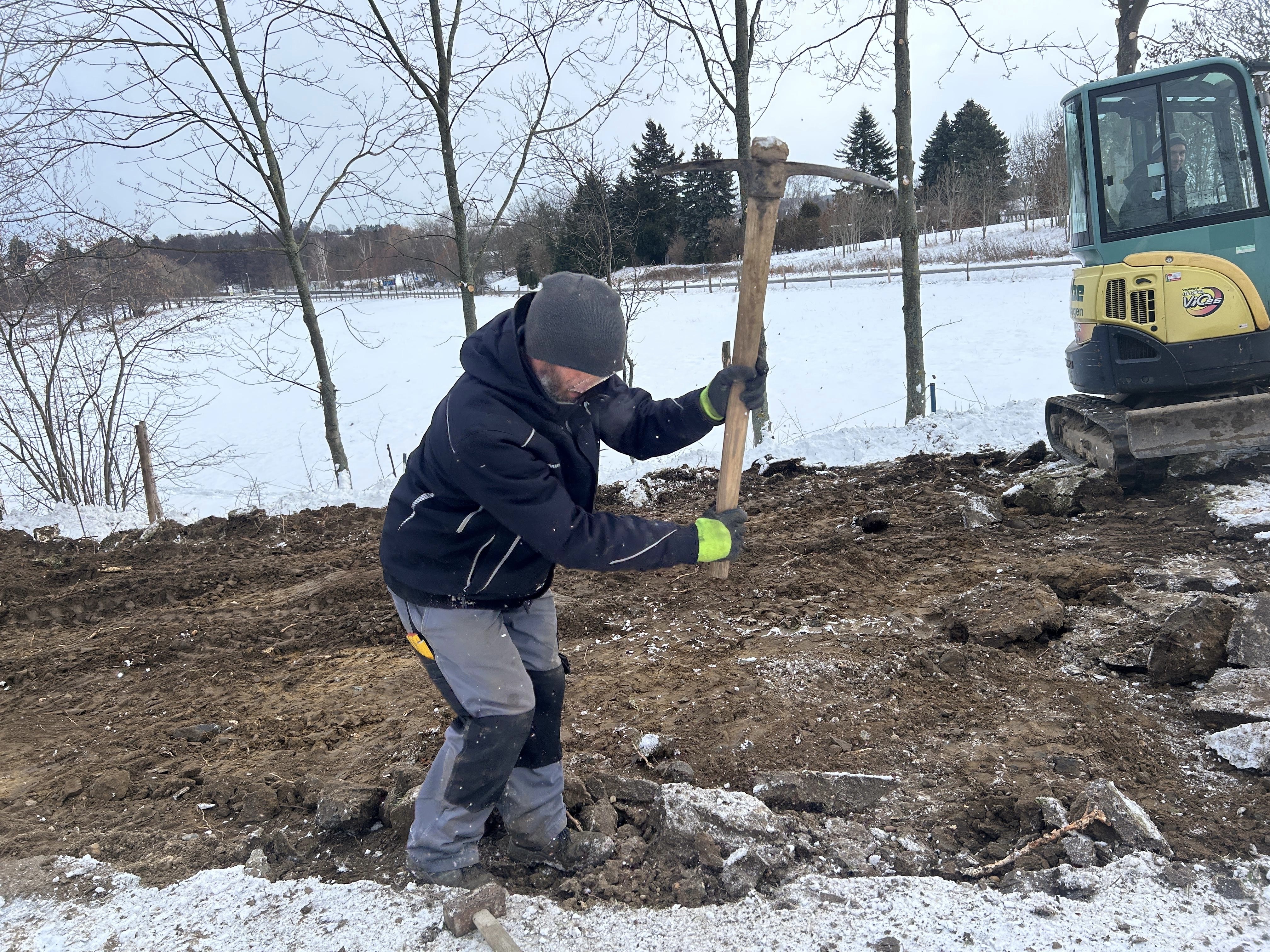 Heute starteten unsere Bauarbeiten am frühen Morgen mit den Erdarbeiten.