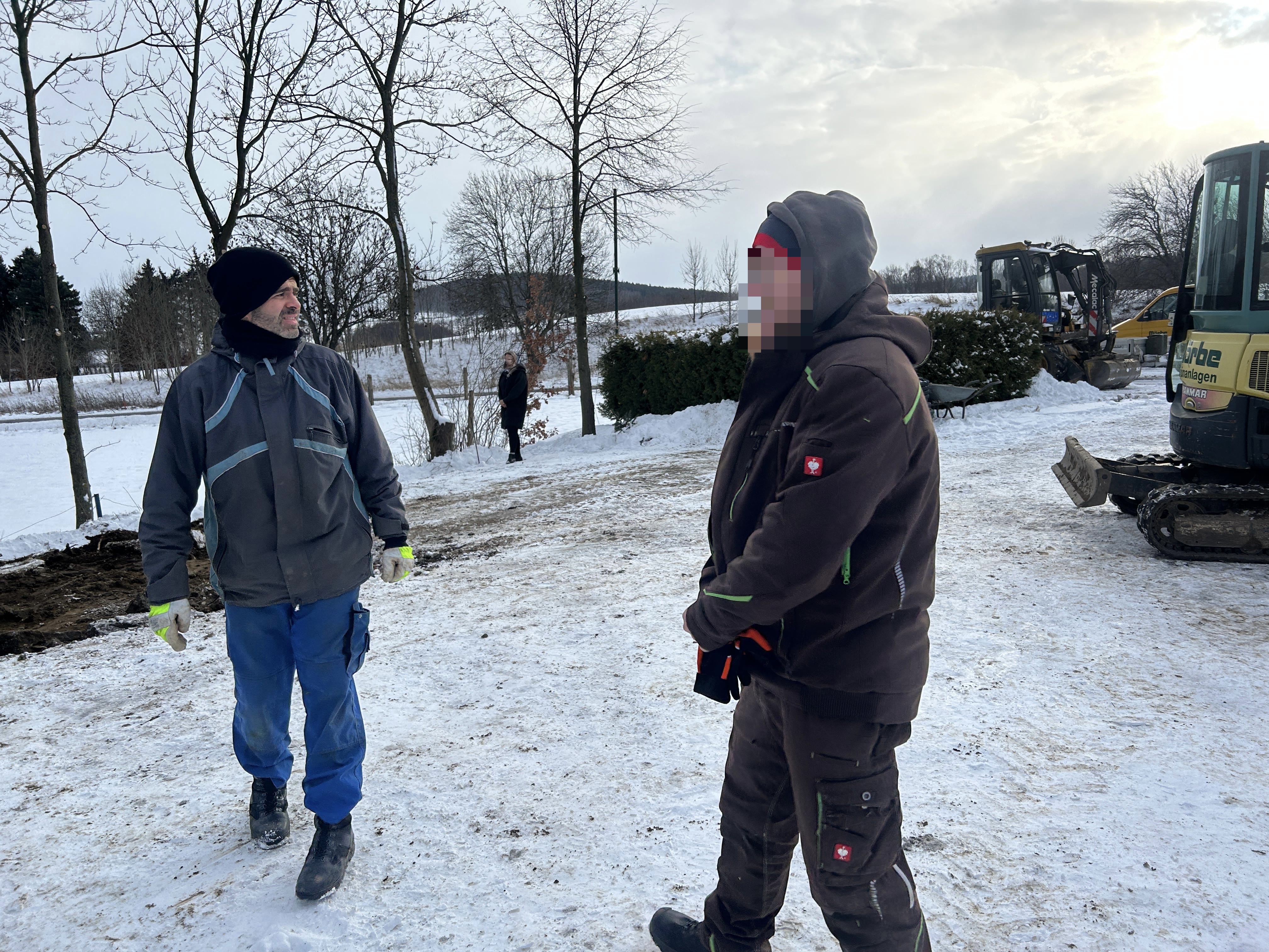 Normalerweise wollten sie schon am Sonntagabend weiter sein, was leider nicht gelang. Das Pensum sollte heute aufgeholt werden. Jedoch Startschwierigkeiten von Maschinen und eine Doppelbuchung des benötigten Radladers schoben schon wieder den Zeitplan nach hinten.