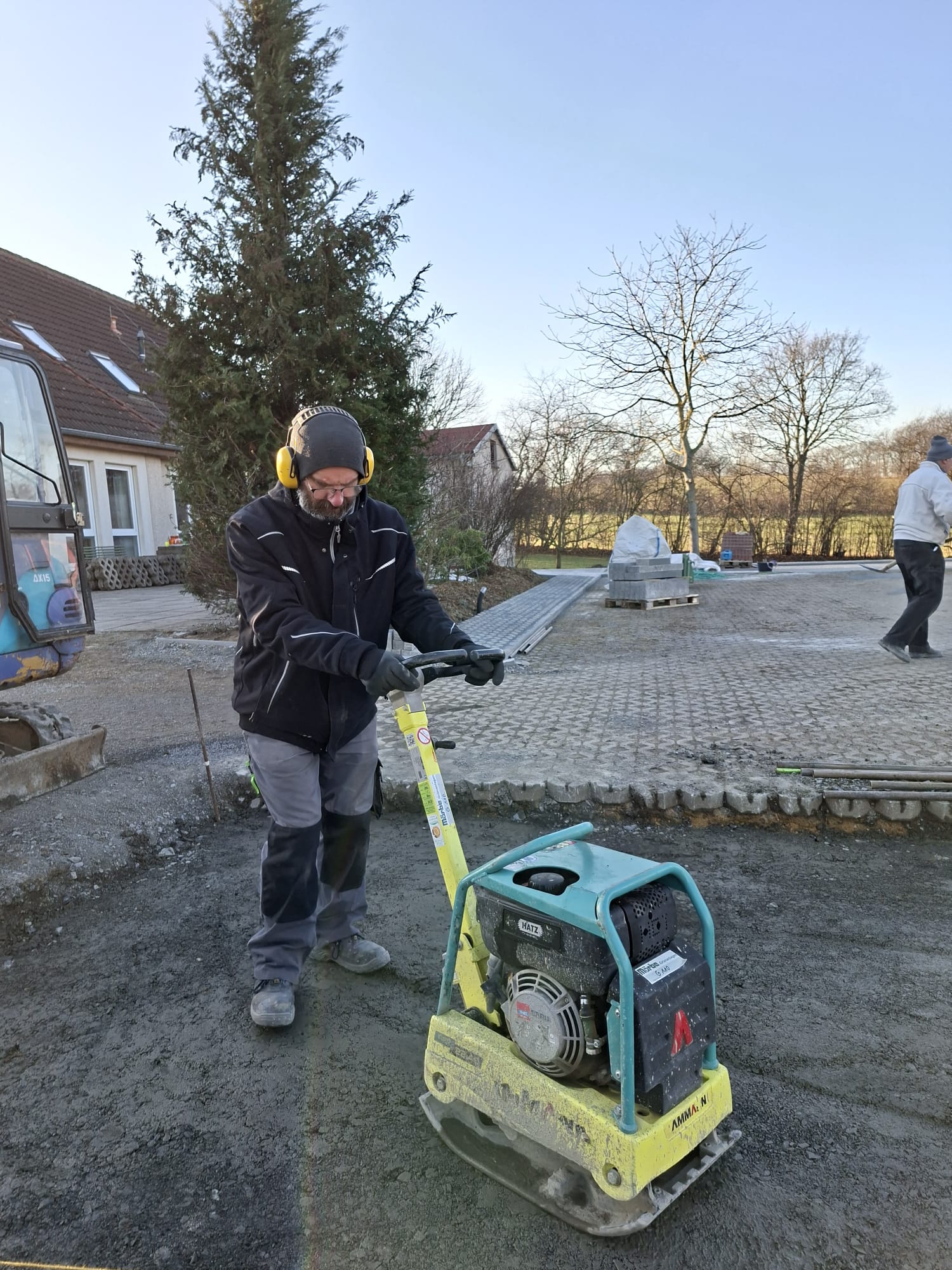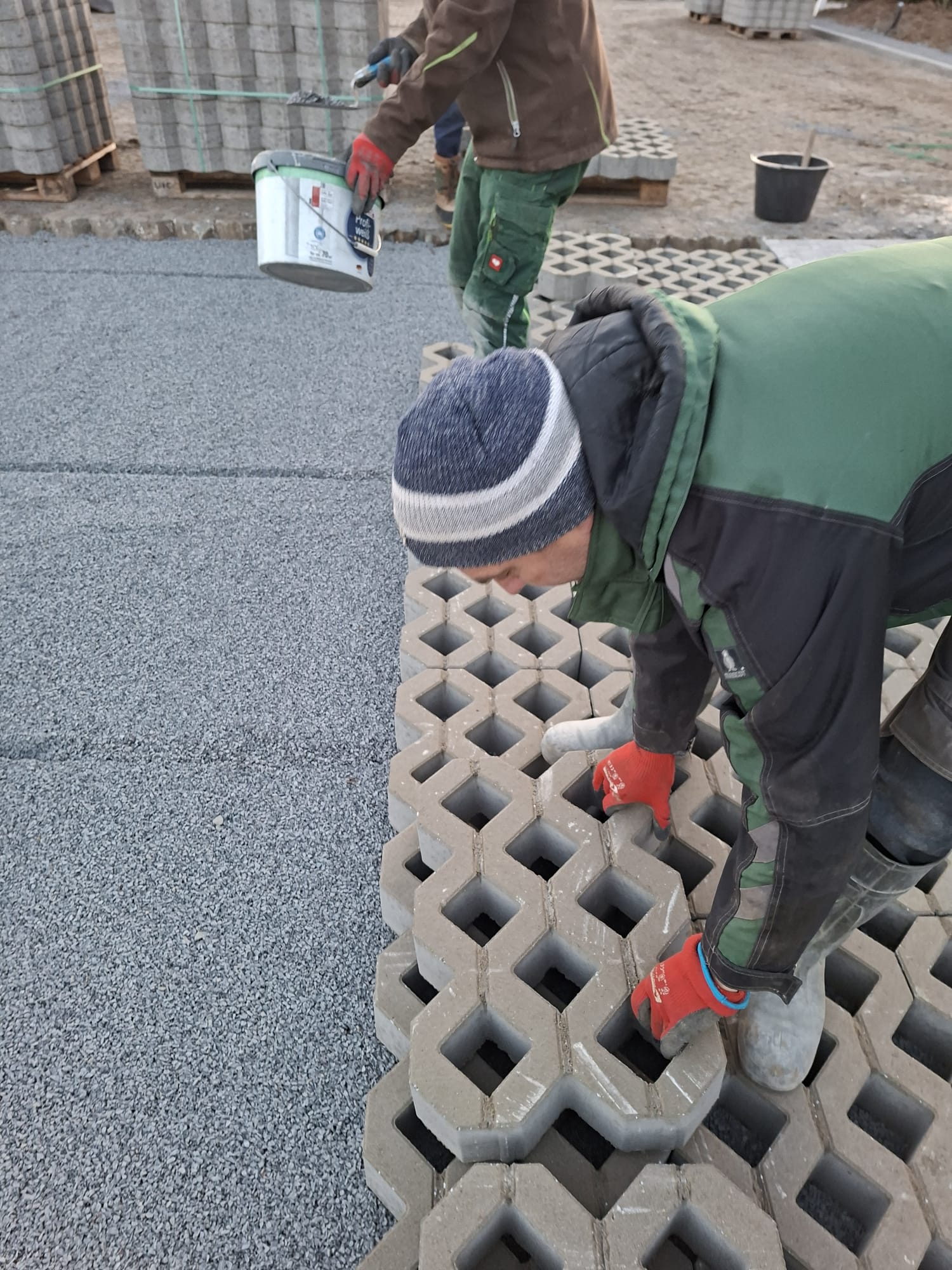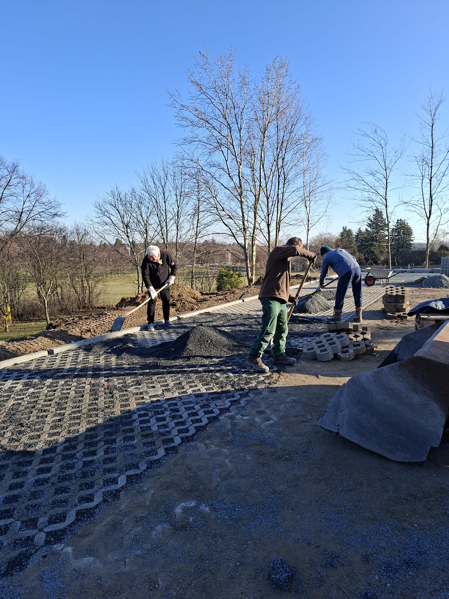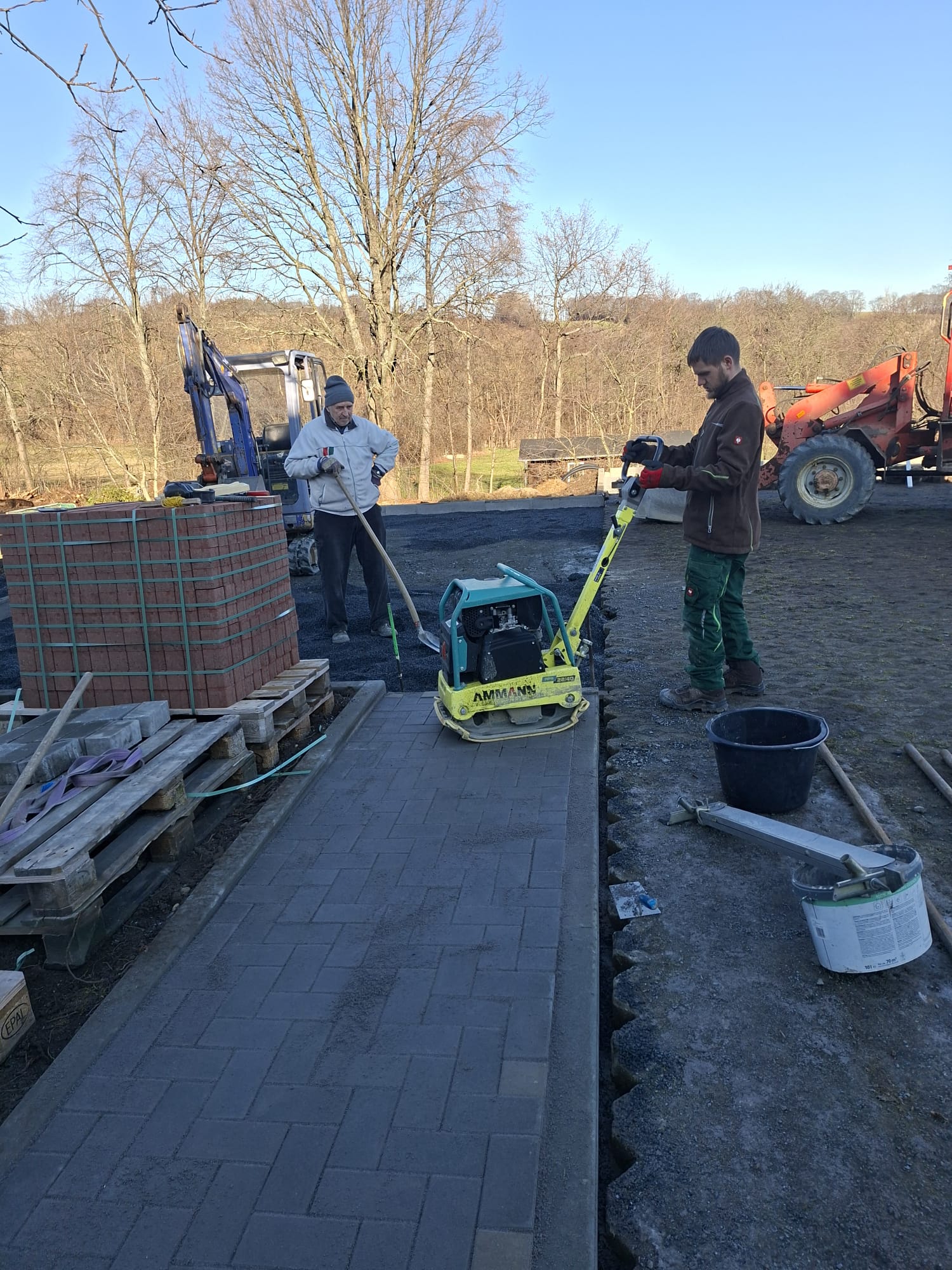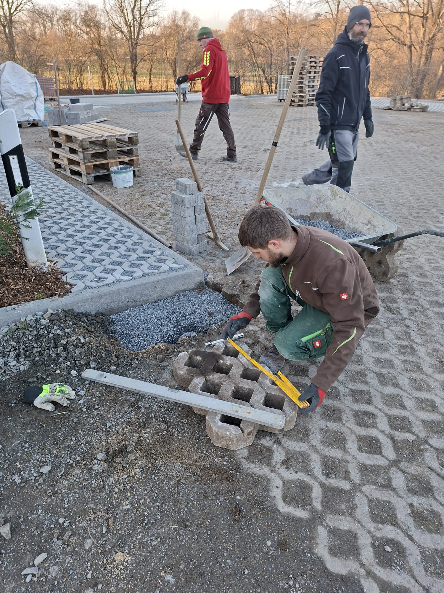 Der Parkplatz ist sozusagen erst mal fertig. Die Sturzsicherung an der Betonkante fehlt noch, der begehbare Weg an der Kopfseite muss nur noch gemacht werden und…. Naja einiges ist noch zu tun.