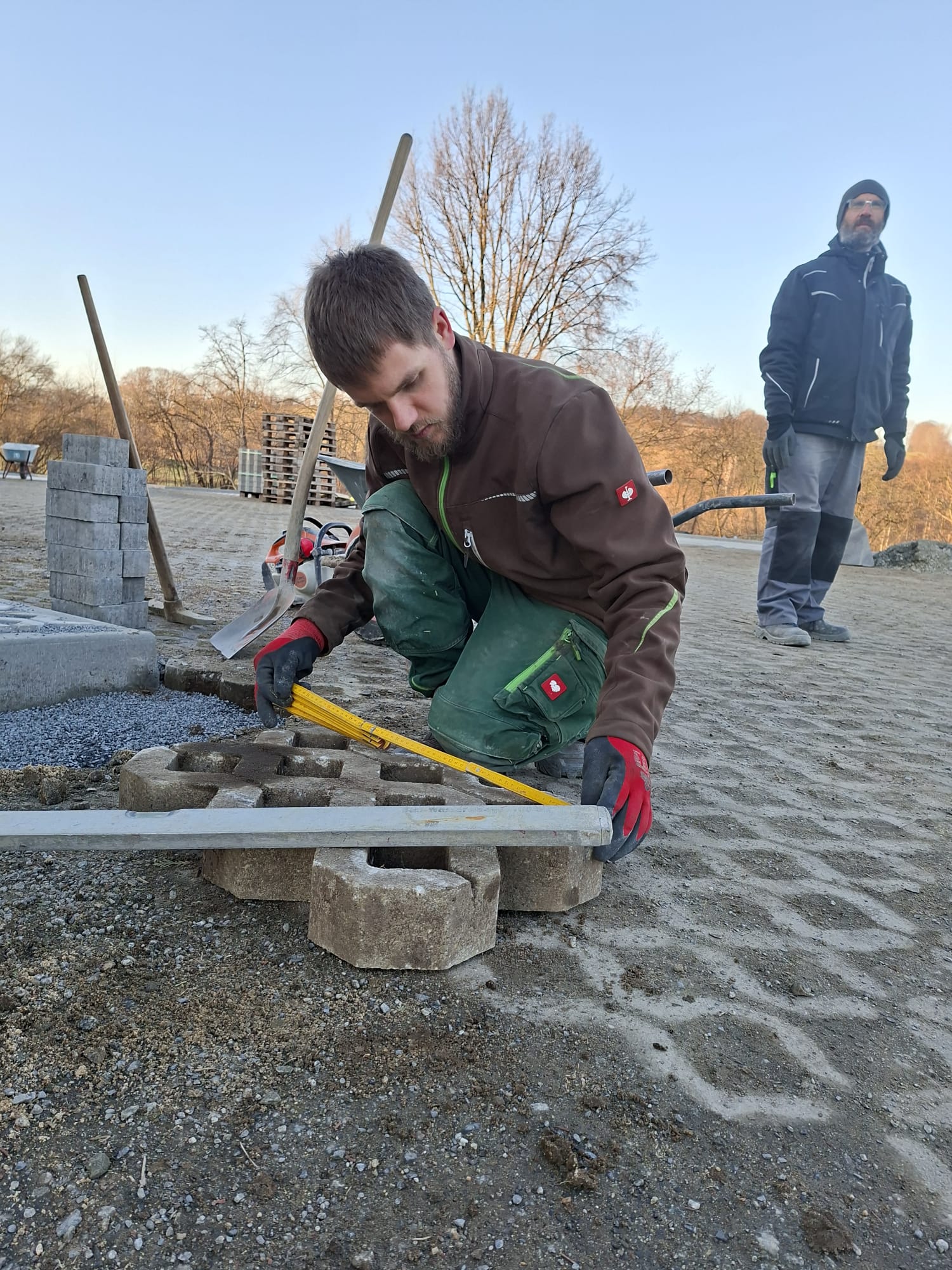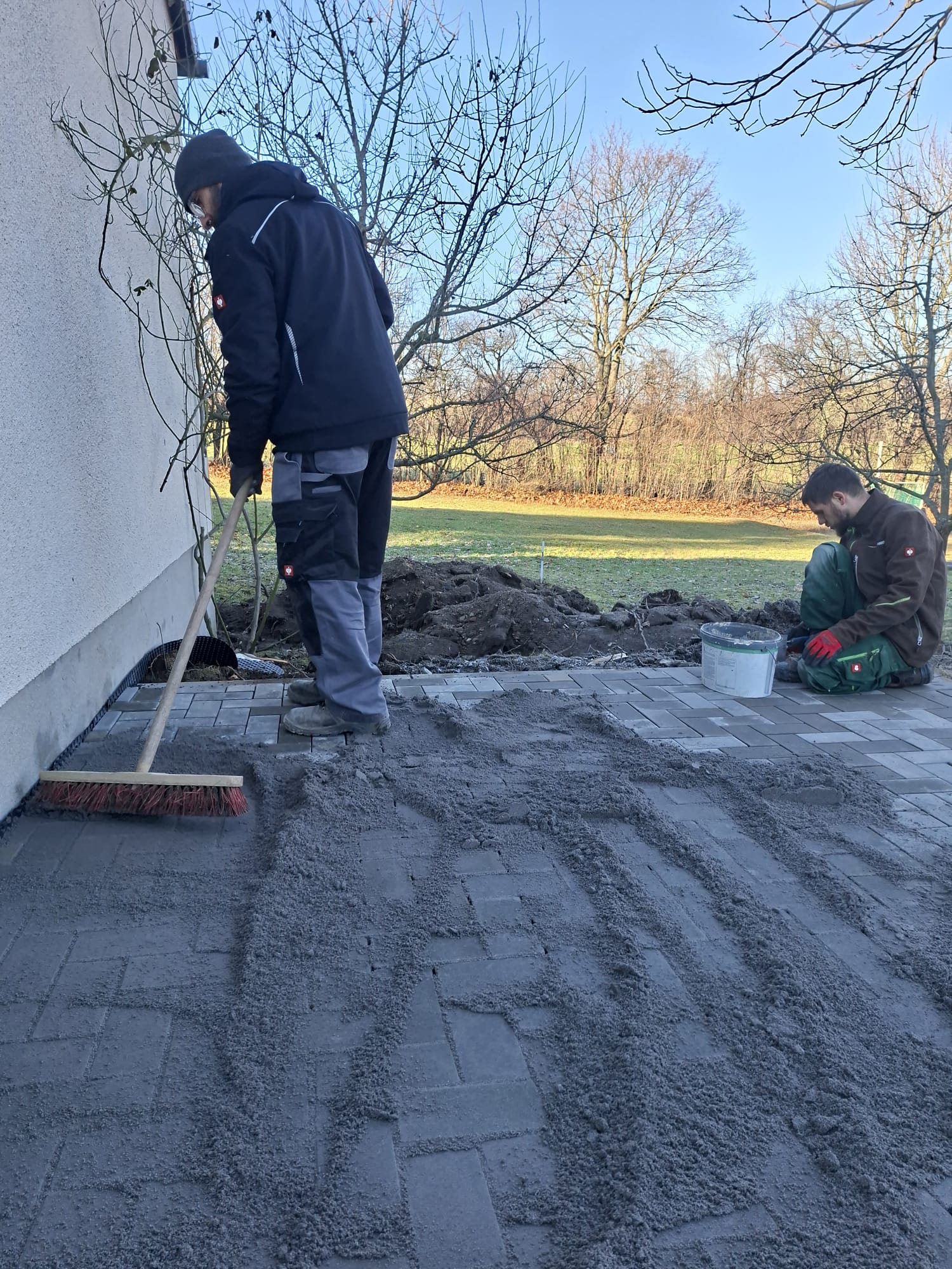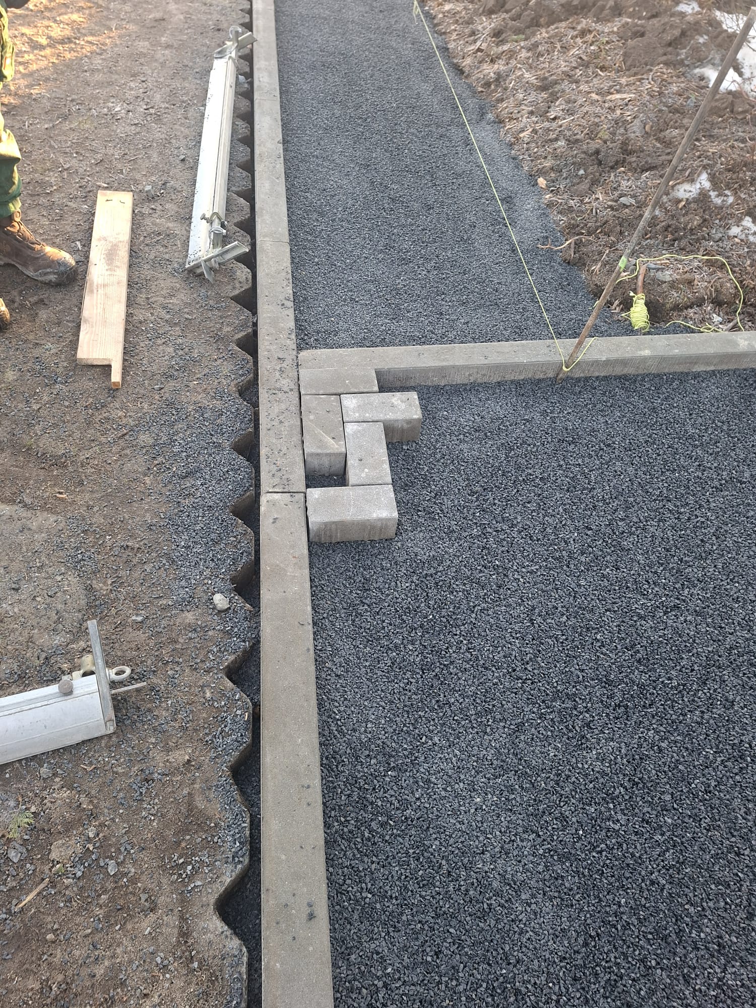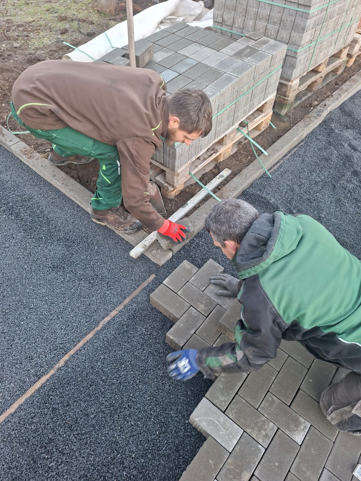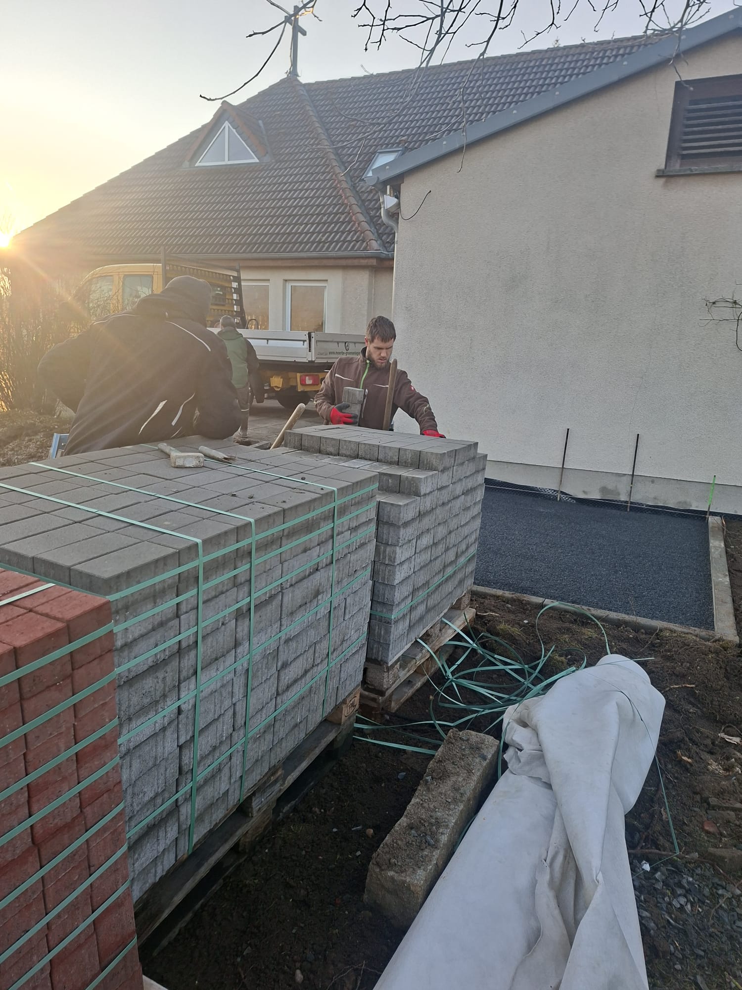 Der Parkplatz ist sozusagen erst mal fertig. Die Sturzsicherung an der Betonkante fehlt noch, der begehbare Weg an der Kopfseite muss nur noch gemacht werden und…. Naja einiges ist noch zu tun.