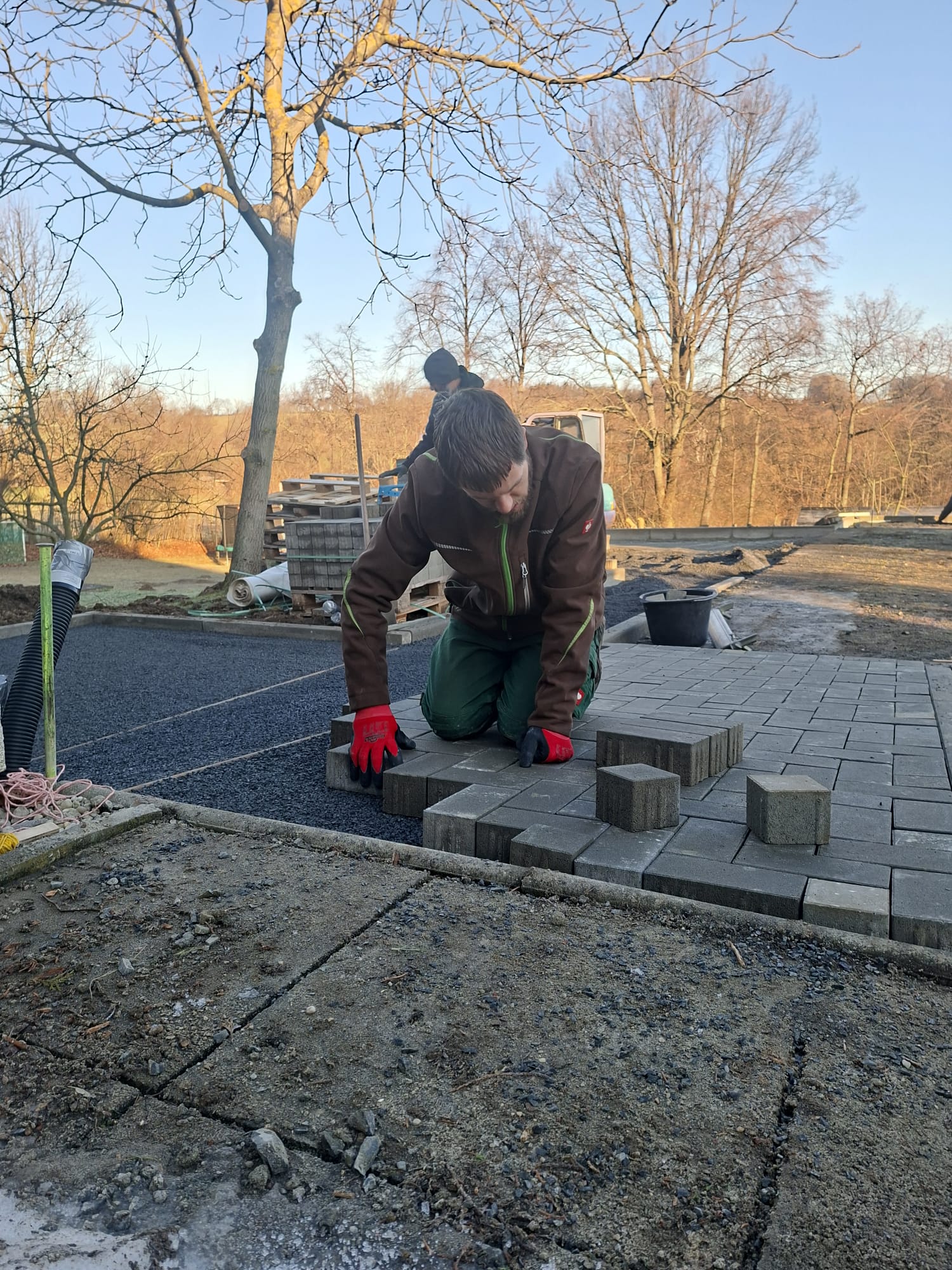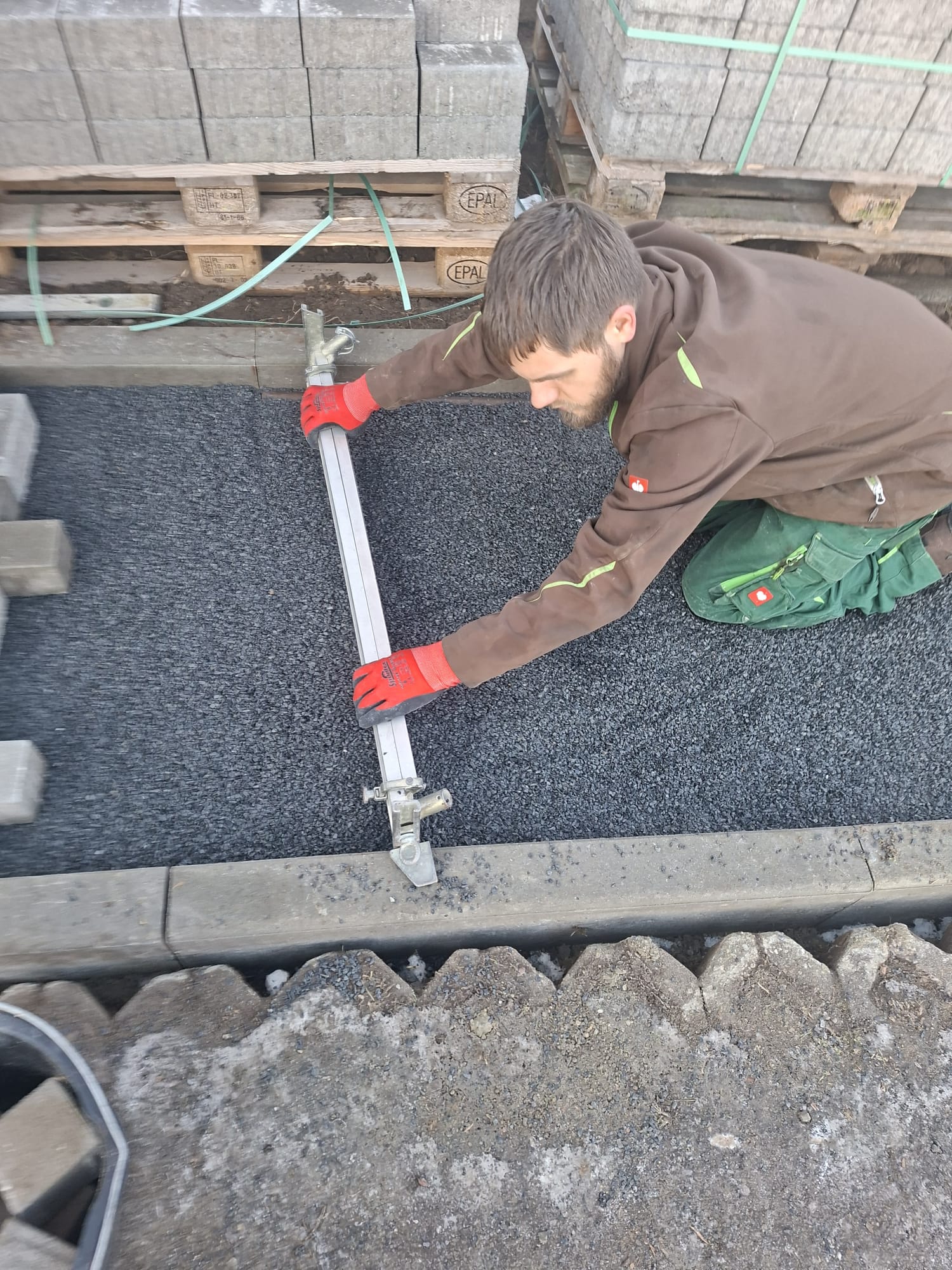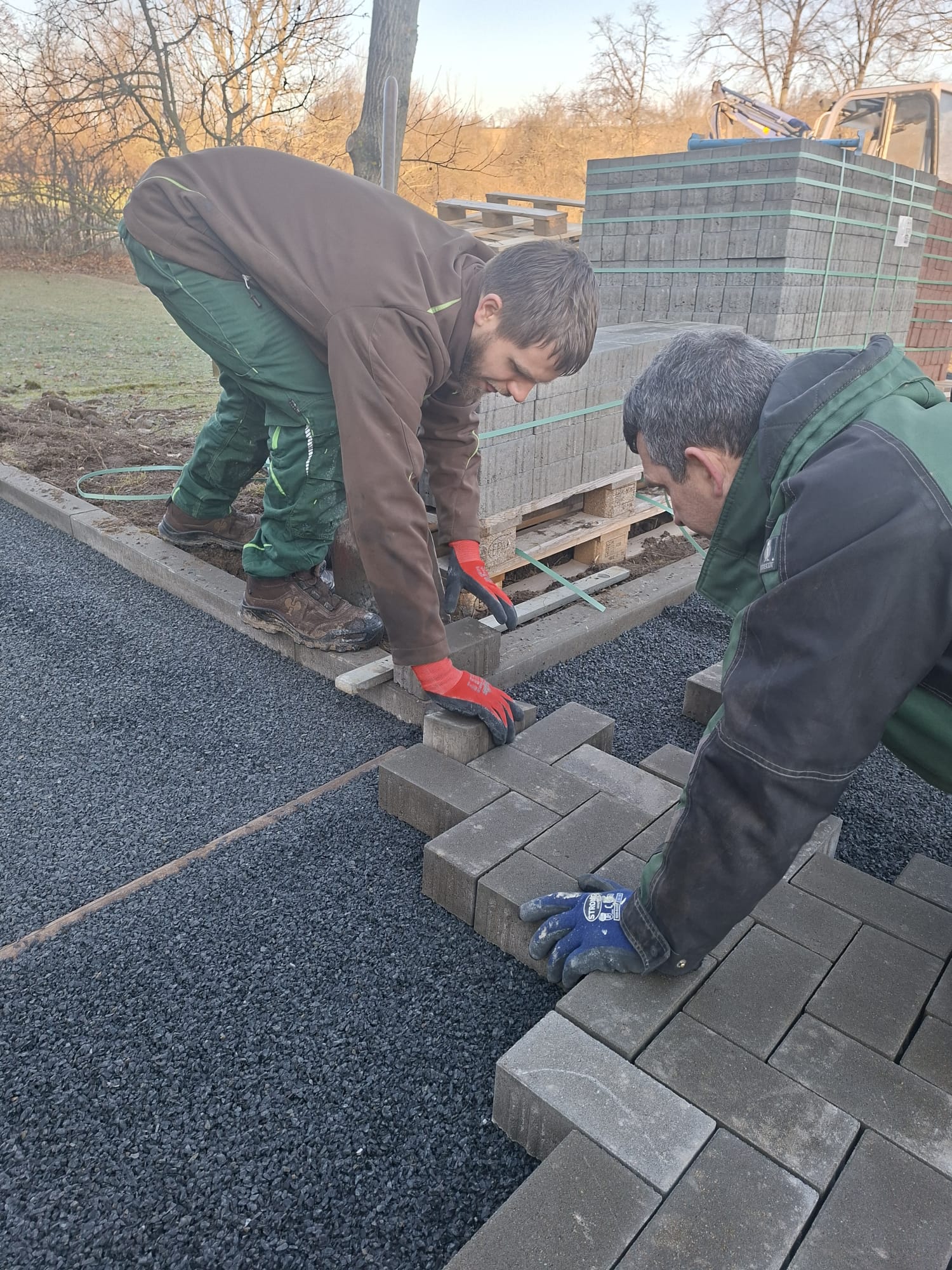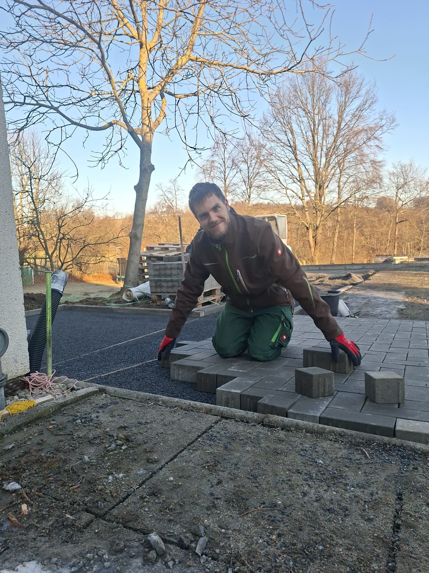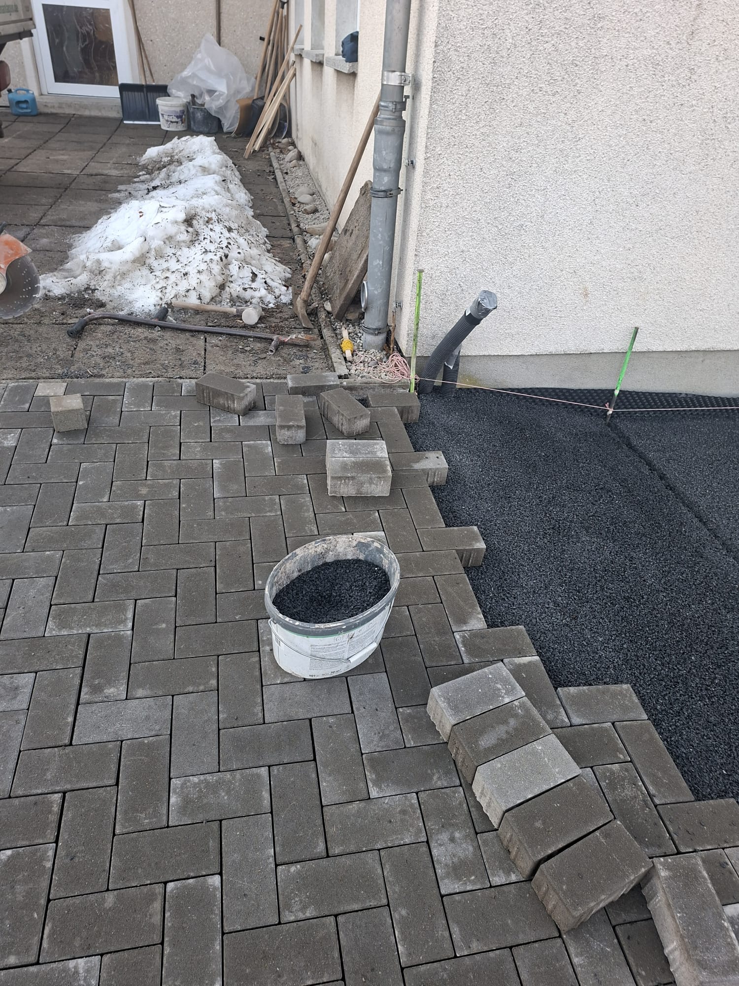 Der Parkplatz ist sozusagen erst mal fertig. Die Sturzsicherung an der Betonkante fehlt noch, der begehbare Weg an der Kopfseite muss nur noch gemacht werden und…. Naja einiges ist noch zu tun.