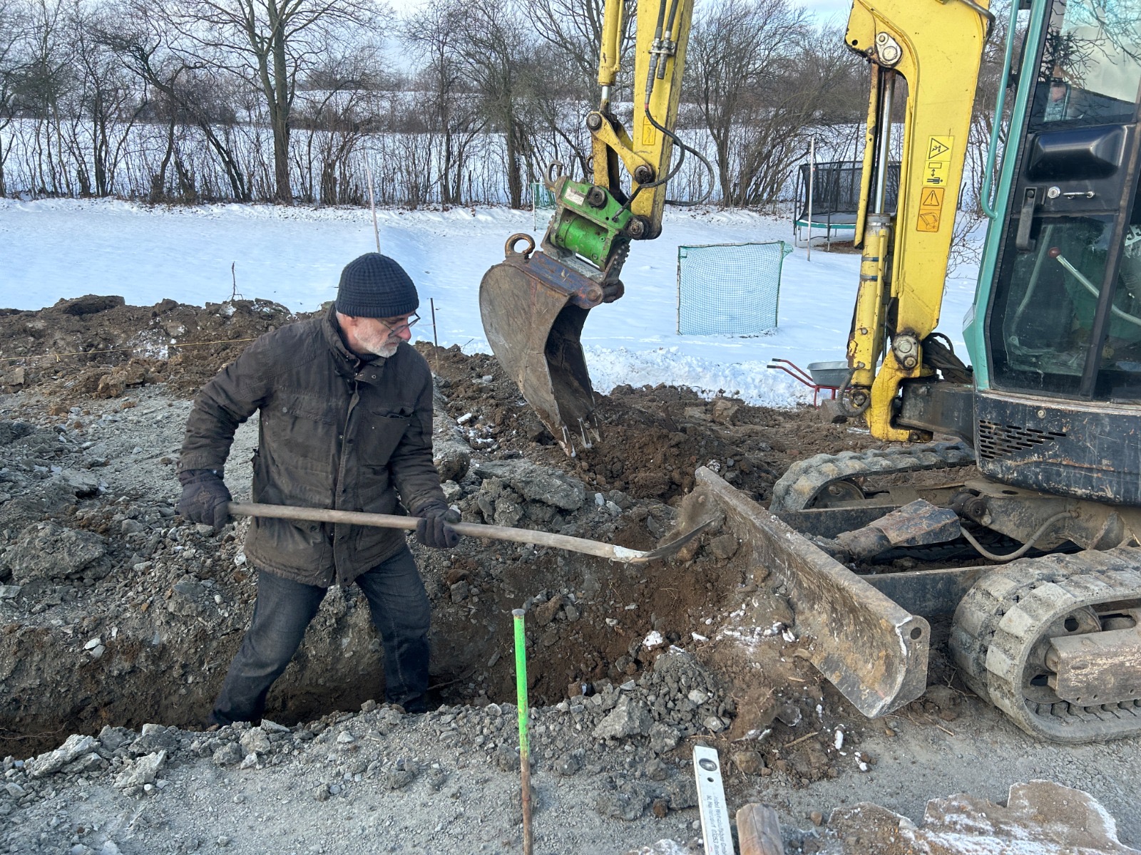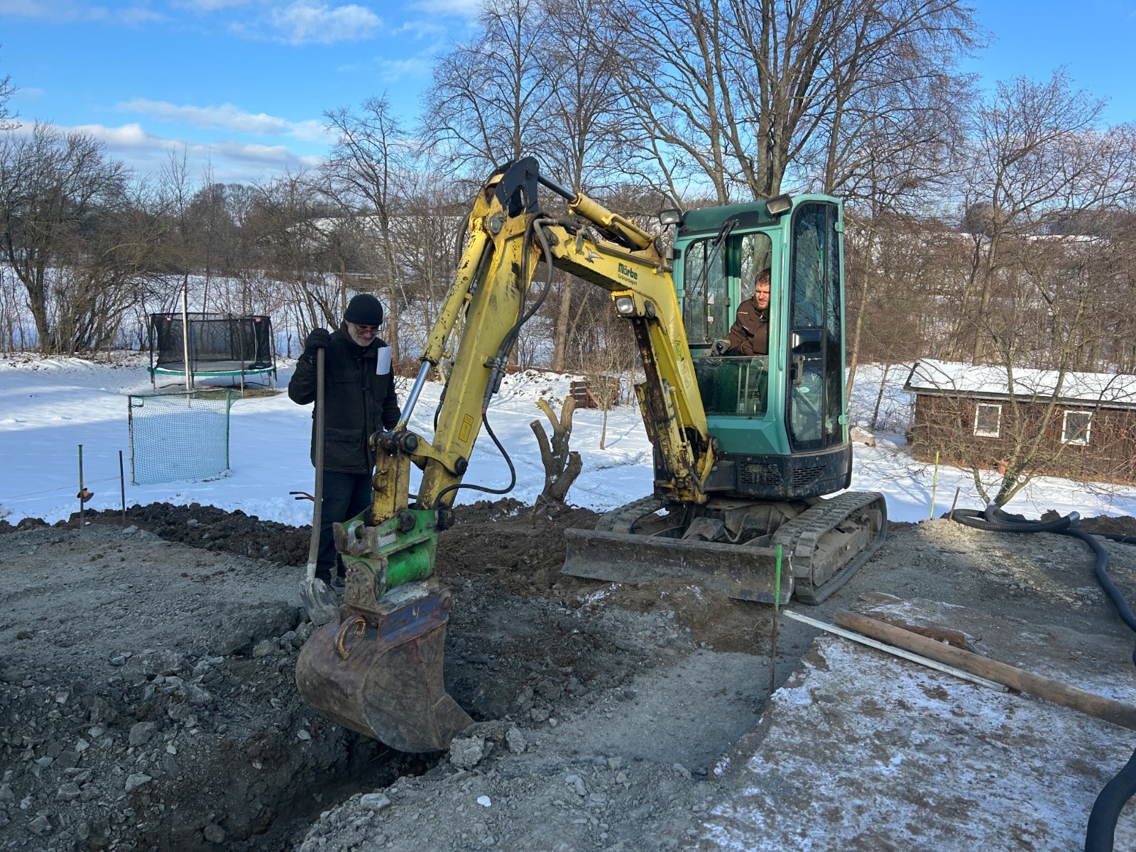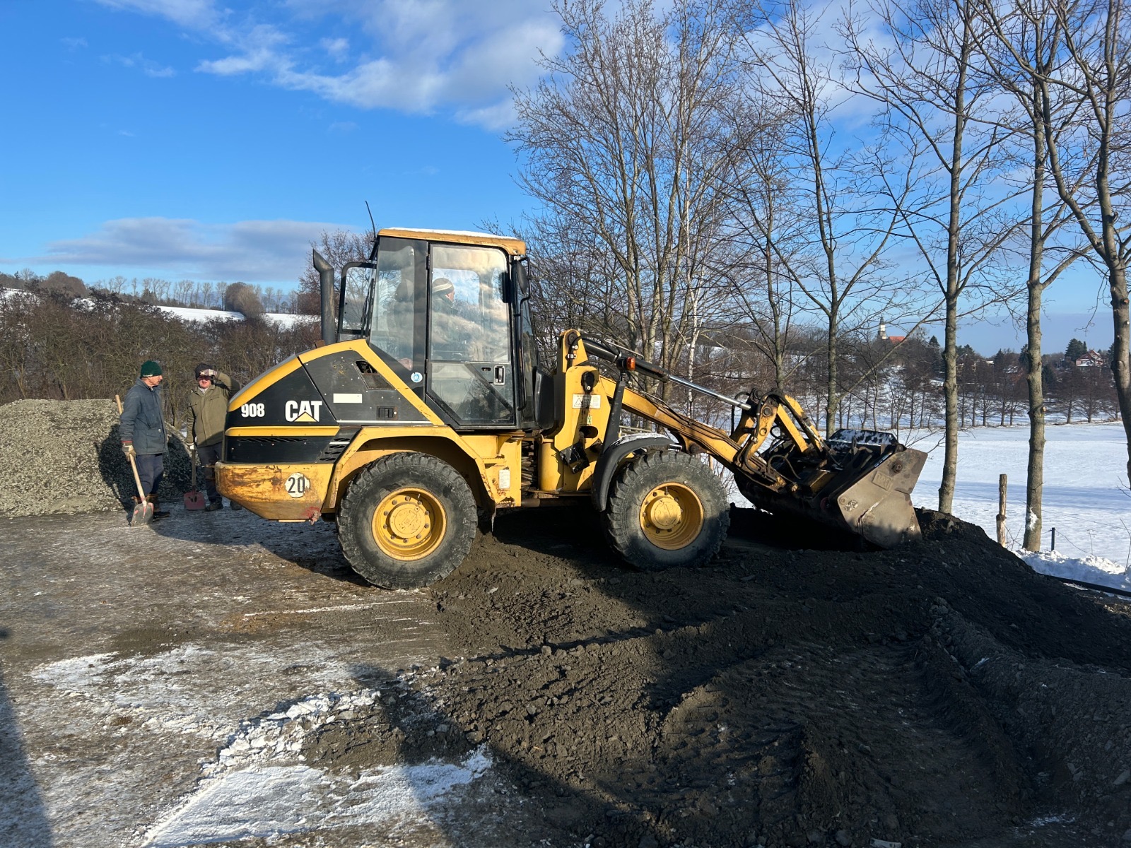 Das klingt nach einem gebrauchten Tag. Dennoch ging es vorwärts. Weiteres Mineralgemisch konnte geliefert werden und auch Kabelschächte für Elektrik wurden verlegt.