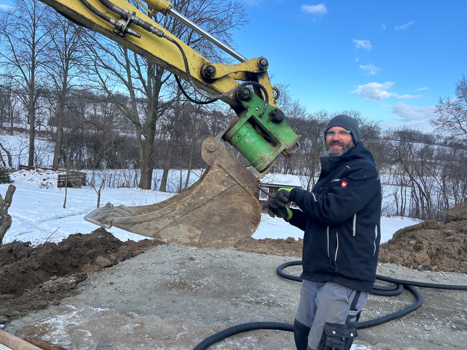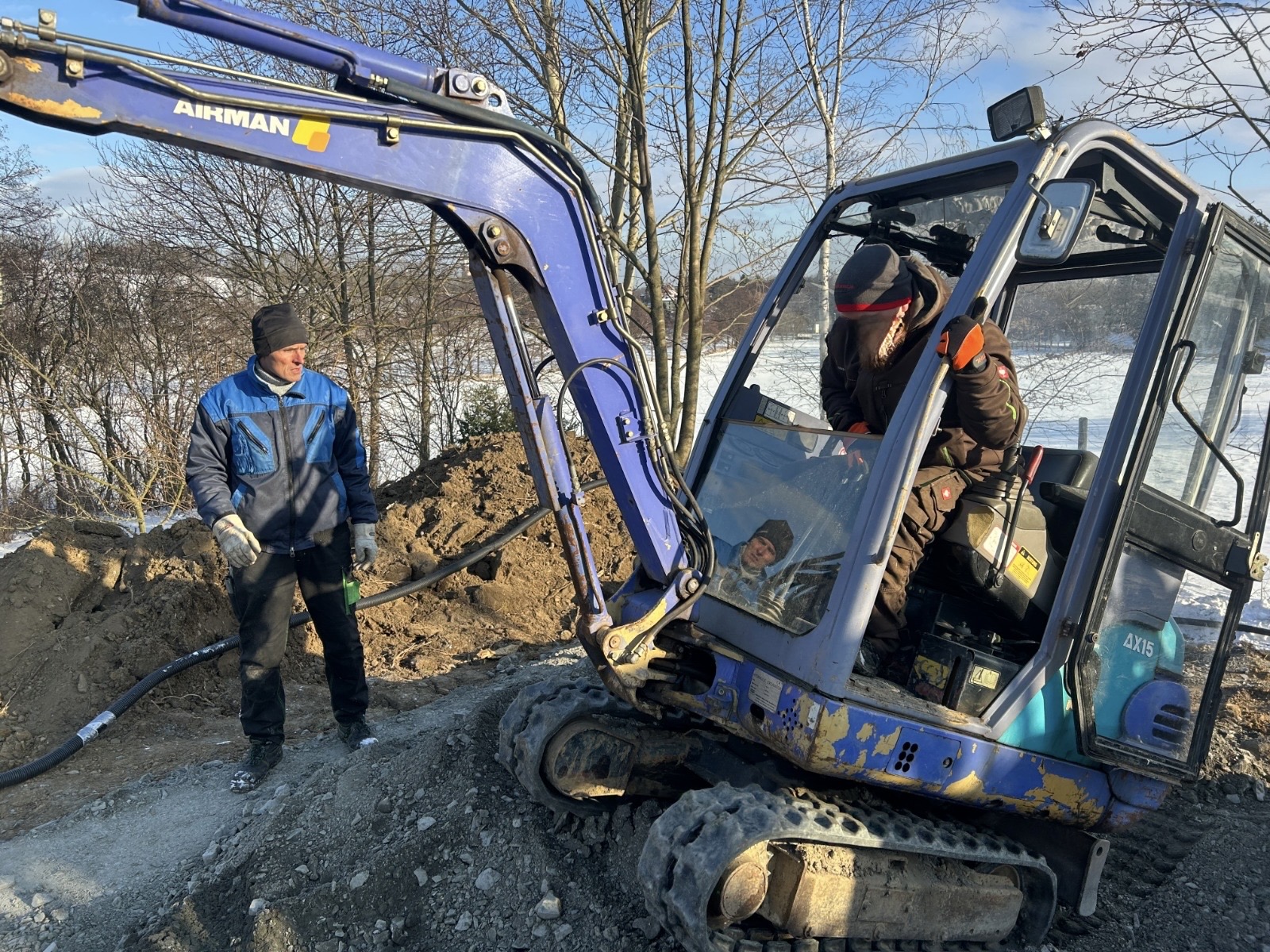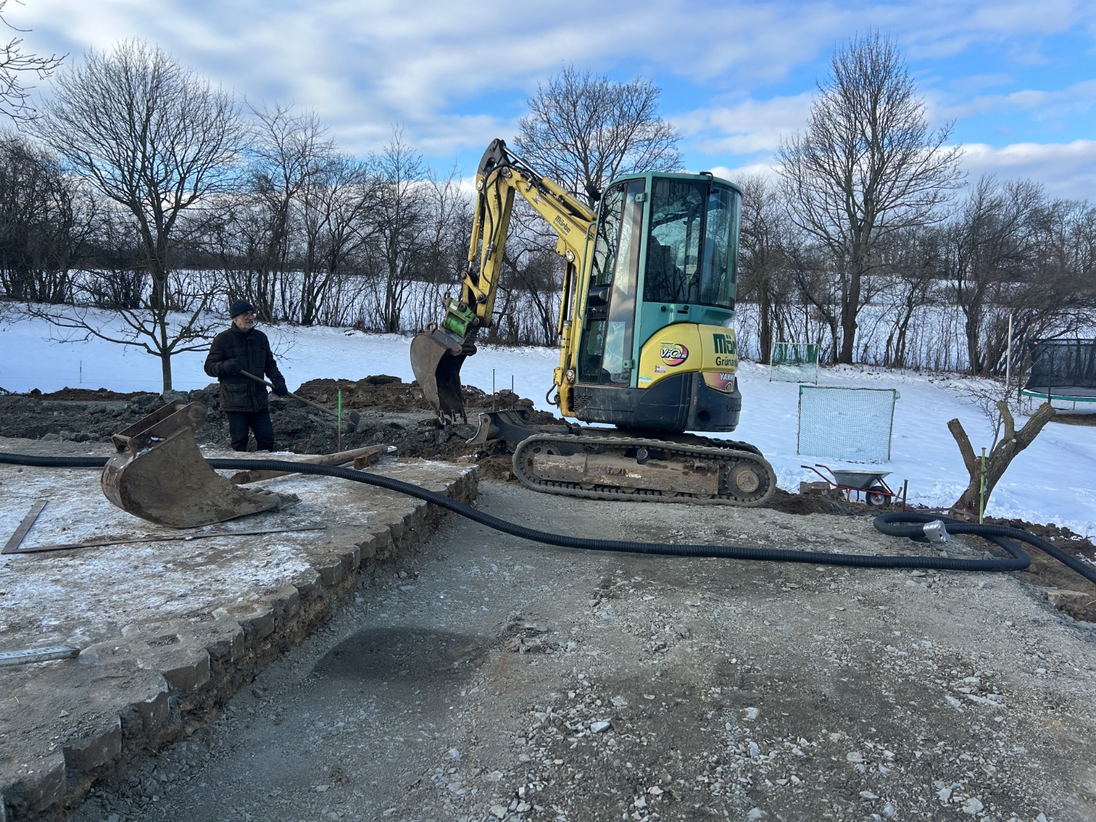 Das klingt nach einem gebrauchten Tag. Dennoch ging es vorwärts. Weiteres Mineralgemisch konnte geliefert werden und auch Kabelschächte für Elektrik wurden verlegt.