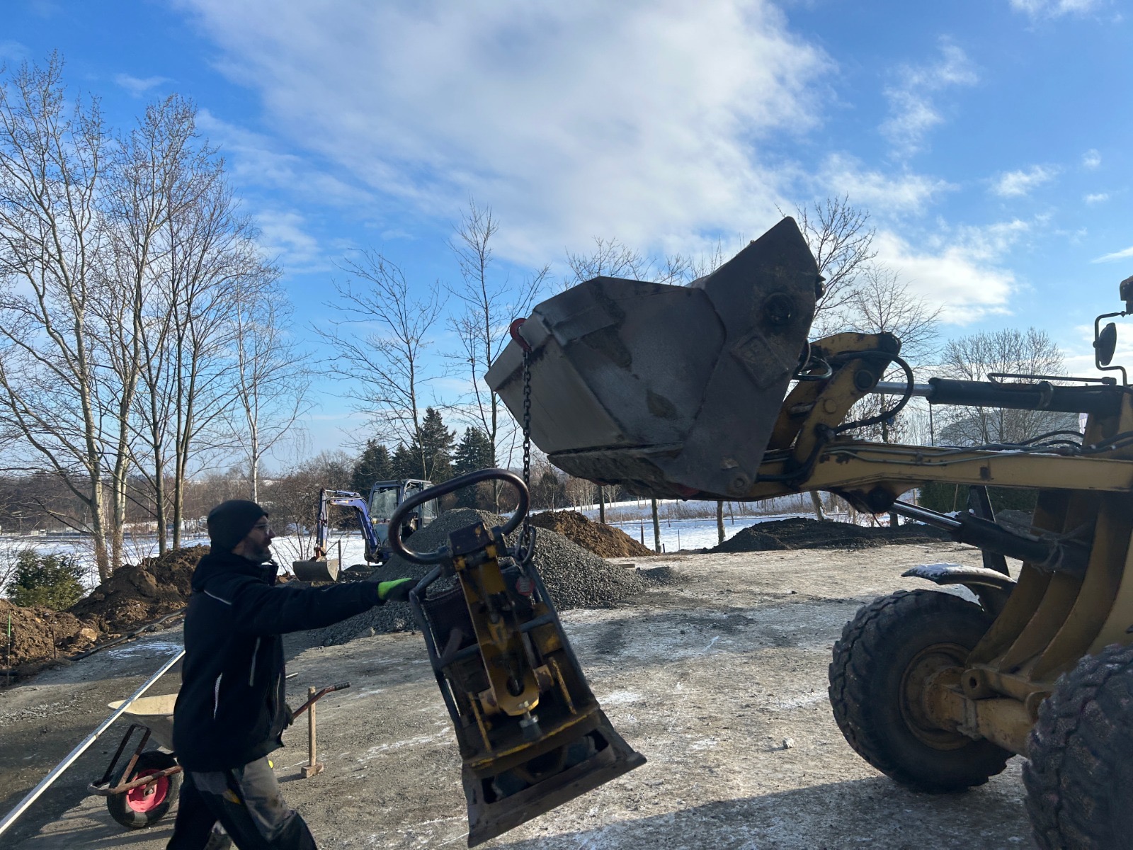 Der dritte Tag unseres Parkplatzbaus war schon irgendwie verrückt. Schon allein das Wetter war noch unangenehmer und kälter, als die Tage zuvor. Einer der Bagger sprang immer noch nicht an und die wichtigen Betonelemente, die heute angeliefert werden sollten, kommen erst am Donnerstag. Der Höhepunkt war die Nachricht vom Betonwerk, welches der Kälte wegen kein Beton liefern kann.